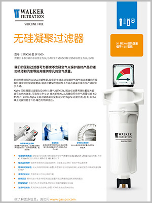 WALKER凝聚式無硅過濾器選用鑄鋁殼體,注重氣流的優(yōu)化,過濾器在油霧和微粒攔截方面都有出色的表現(xiàn),過濾精度達(dá)到0.01微米,確保出口壓縮空氣符合ISO 8573-1:2010標(biāo)準(zhǔn),1微米無硅過濾器和0.01微米過濾器的飽和壓差低于125mbar。WALKER凝聚式無硅過濾器在特殊生產(chǎn)車間制造,只為確保無硅過濾器、無硅濾芯以及附屬配件在生產(chǎn)過程中全程不存在含硅聚合物,也不會在生產(chǎn)過程中引入含硅聚合物。WALKER凝聚式無硅過濾器的測試環(huán)境也是不存在含硅聚合物,不會引入含硅聚合物,做到生產(chǎn)和測試環(huán)節(jié)全程無硅化。