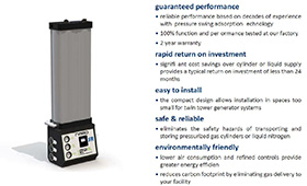 比起傳統(tǒng)雙塔式氮?dú)獍l(fā)生器,制氮純度為95%~99.9%的SR模塊制氮機(jī)的優(yōu)勢(shì)是機(jī)身設(shè)計(jì)緊湊、節(jié)約安裝空間、節(jié)省電能和壓縮空氣、降低用氮成本。只要在進(jìn)氣口接入符合進(jìn)氣要求的壓縮空氣,就可
